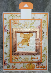 My card for You're a Squeak-Heart tells a story starting with a wheel of cheese. Slide up to reveal the little mouse eating a piece. And then inside...