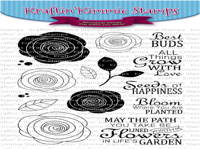 For my layering stamp, I decided to use a set from Kraftin' Kimmie Stamps which was made by one of my fav artists Becky Pearce. For layered stamping, you need to have 2 or more complimentary images that fit together. In this set, there are 2 roses which are the filled in areas and 2 which are just the line areas of those. For some stamp layering sets, the layers will be on top of each other to build the image and its shadowing. In comparison to those, these ones are pretty simple, but I like 'em.