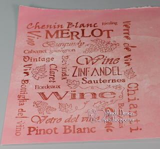 I stamped wine drinking girl from Unity Stamp Co with Fog ink and then watercoloured her with Neocolour II crayons.