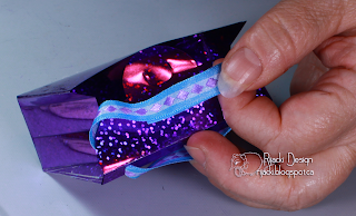 I used a bit of purple and blue ribbon to make the strap, instead of the one die cut.